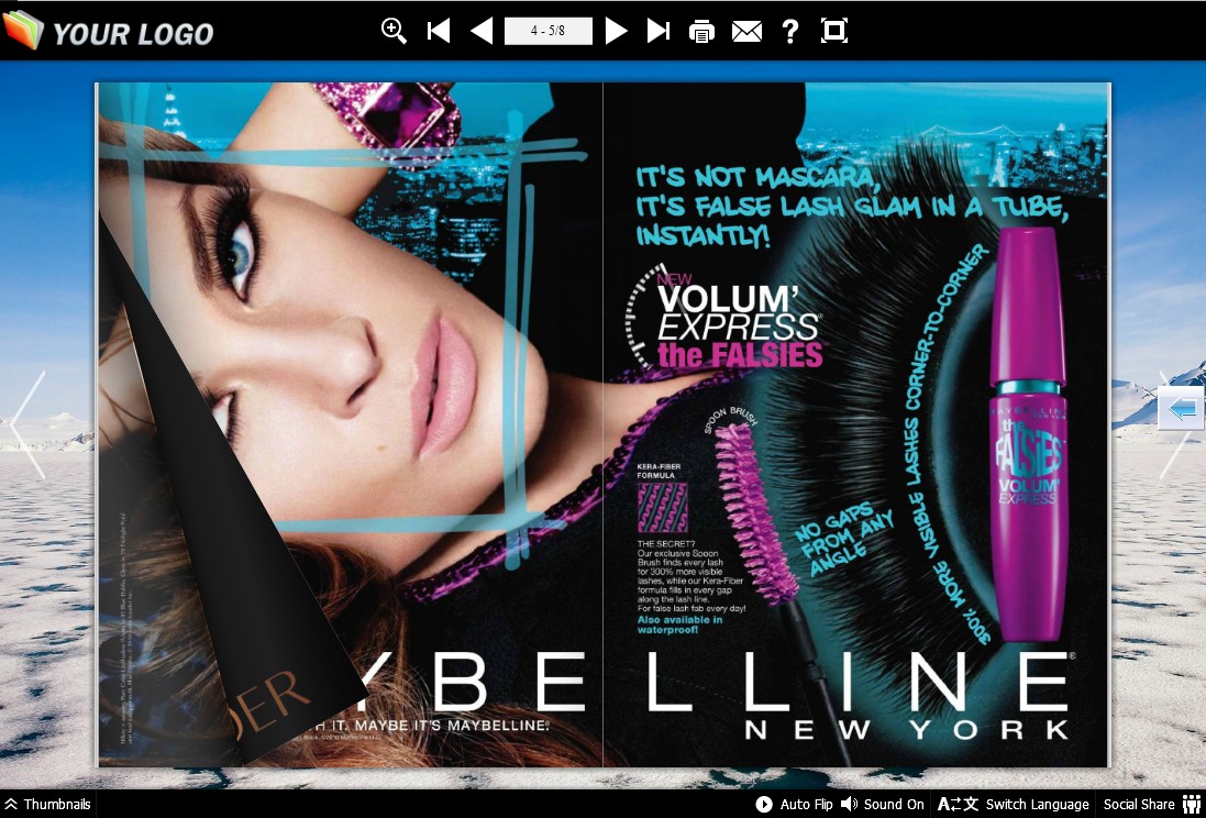 This Winter theme package has been released online today. It is designed for you to decorate your flipping book. This theme package includes one template and three background images. The basic template is neat style. This theme package is about nature. In addition, neat style template contains Fullscreen, Help, Print, Bookmark, Social share button and so on. Finally, you can also insert your company logo to your flipping book. This theme pakage is completely free, you can download it and have a try.
